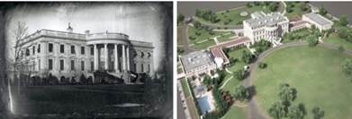 Here’s one of the earliest pictures of the White House and a picture of the White House complex today.